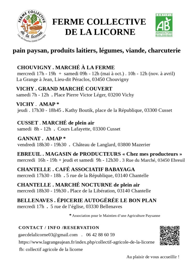 CHOUVIGNY . MARCHÉ À LA FERME ~ Légumes de saison, pain paysan, produits laitiers de vache et occasionnellement viande et charcuterie